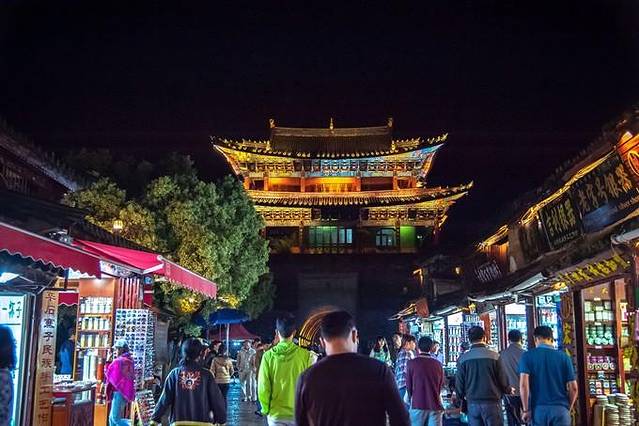 古时候,束河的四方街上设有夜市,人们像今天的都市人一样漫步在四方街上,随心所欲走走停停,看看稀奇,吃点儿自己想吃的东西参与一下喜欢的游戏,逛夜市的人手里举着火把,穿行在青龙河畔,如夏夜流萤,成了一道风景,叫做“夜市萤火”,列入束河八景之一