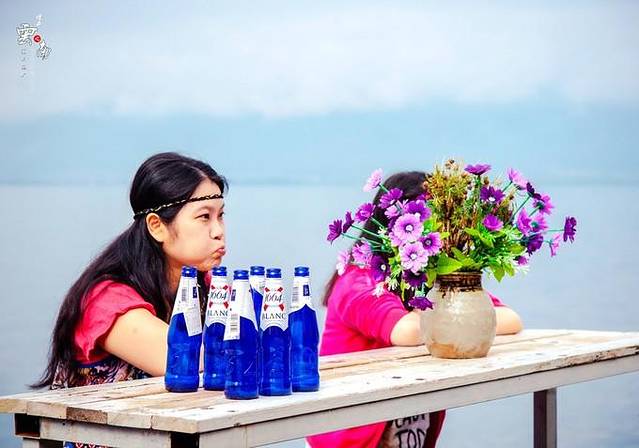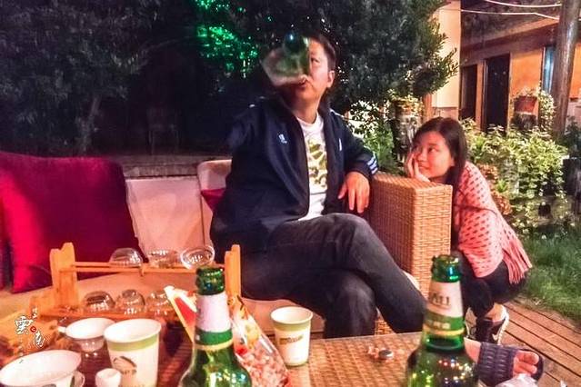 一路颠簸,些许累了,我们买了啤酒,就在客栈小花园细品…