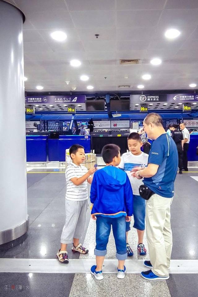 ↓ ↓ 嫂子们,在值机口闲聊。