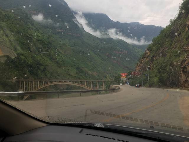 刚上路就下了小雨、爸爸说安逸..这样凉快!真是出门的好天气!