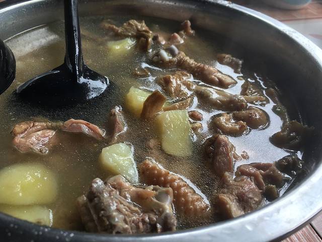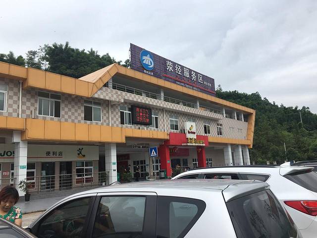 路过服务站、里面的自助餐挺好吃了的、爸爸说回程的时候还在这休息
