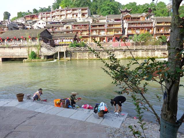 早起的时候还能看到当地的居民在沱江边上洗衣服