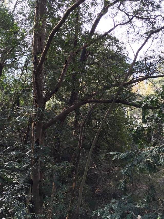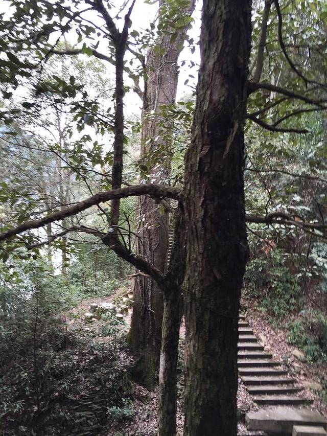 感觉山上的栈道走的人应该很少,一路上就碰到一对小情侣。栈道是随山建的没有通到山顶,走着不累,看着山上有不少像是蕨菜的,兴奋的摘了点才想起来还要好几天才回家吃不了呢,而且也认不大好是不是蕨菜,好可惜啊。