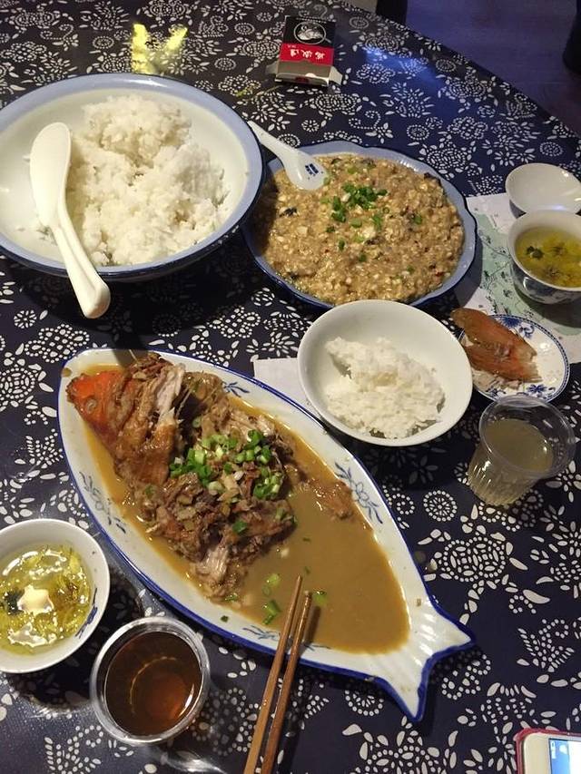晚上就住在景德镇晓卢国际青年旅社啦,刚装修好没多长时间,有四人间和标间多种可以选择。累了一天找了一家人气很旺的餐厅犒劳一下自己,我们边走边逛,景德镇不愧是瓷都啊,大街上卖瓷器的商铺多的不要不要的,样子也很好看,最后都晚上7点多了到的小黄鱼(第三期),排号的人还真心很多,后悔没有提前打个电话排号。但饭店的服务还是不错呢,看那么多人服务员就建议我们再去逛逛,号到了给我们打电,本来还担心会把我们給忘记,但没多长时间就打给我们啦。太晚了好多招牌菜都没有啦,但吃的还是不错呢,价格也不贵,招牌菜小黄鱼(炸过的小黄鱼浇上汁很好吃的)、笋蒸鸭、抄蛤蜊、老式糖醋排骨和两个香菇包(豆沙馅的,就是外表像香菇,味道不错呢),四个菜一百多。