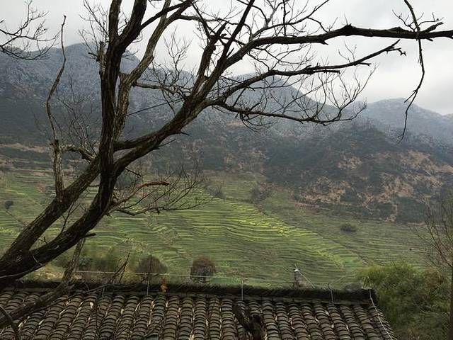 从缆车下来,就有酒店的人来接送到住的房间。在村子里走了走,感觉真是要让人带着才能找到住的地方啊!窗外就能看见大片的梯田,因为前两天的寒流,山上都下雪啦,油菜花也有不少被打下来了,虽然没有看到灿黄的一片,但能同时看到雪和油菜花还是感觉挺值得啦。