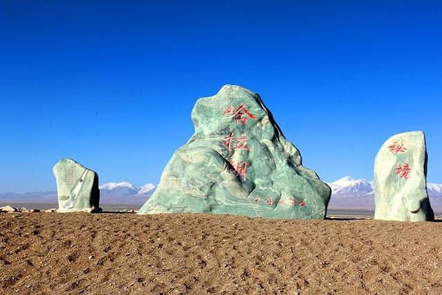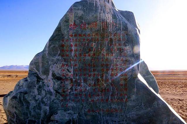 离湖很远就见哈拉湖三块与湖水相似的玉石招牌,哪碧绿的湖水和远处的雪山与蓝色的天空白云相互对称,湖边巨大的冰块成为前景是拍摄风光片的地点,翠绿的湖水犹如绿宝石一般,湖水托付着这雪山,雪山衔接着湖水。镶嵌在海西这块宝地上。