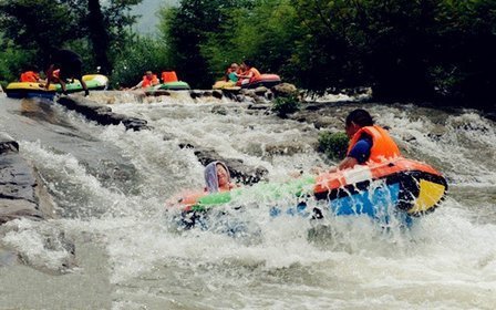 中午在景区附近午餐(菜的质量直接和客栈无法相比)。餐后漂流,原计划玩峡谷漂流,景区小店的老板说还是去石马湾漂流,更惊险好玩点,采纳!立刻去哪儿网上订票90元/人。