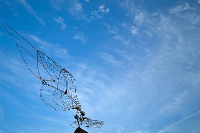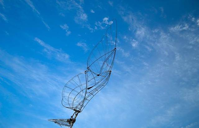 当代艺术馆楼上的艺术品,随着风在振翅,只是有所束缚,它不能展翅飞翔