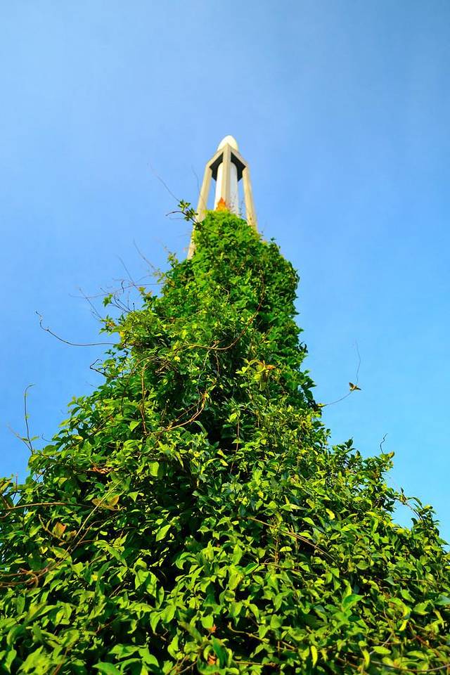 当年人潮涌动的世博会,这个路灯看着无数人走过,现在陪伴他的只有一直向上的藤蔓