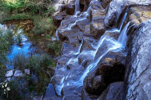 “鱼鳞坡”为花岗岩的节理,在风化时呈层形剥落,形似鱼鳞,谷中溪水漫流,晶莹诱人。