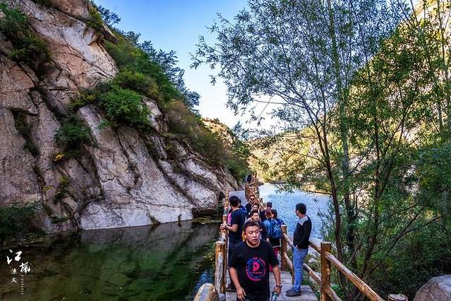 也许是昨晚在宾馆“干瞪眼”太兴奋,还是因为住在景区免去了堵车的烦恼,早上起来,大家精神抖擞,简单吃过早餐后,便集体步行前往龙庆峡了……