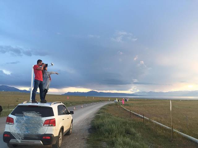 赛里木湖的日出,我们没有看到,因为一大片乌云遮挡!遗憾,但不难过!因为六个人,开始越来越嗨,讲话也是融入新疆调!