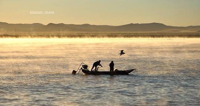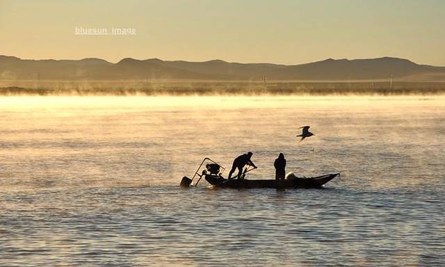 秋天的清晨,由于空气温度低,水面温度高,在太阳的照射下水面就会泛起一层水雾,朦朦胧胧,仿佛仙境,美的让人陶醉。