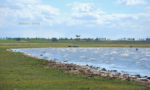下午本来想去滦河神韵风景区,路上却无意间发现一个很大的草原湖泊,风景极好。后来查地图才知道这个是库伦卓尔湖,也叫天鹅湖。我们是在湖的北岸,车可以直接开到湖边。