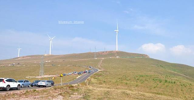 山坡上高大的风车则是这一段天路的另一大看点