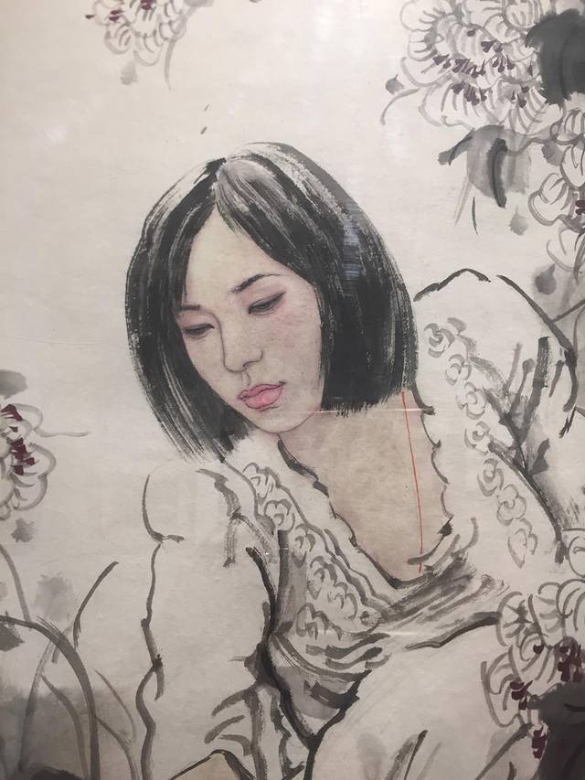 其实这是一幅油画作品,拍摄反光的效果,但依然可以看到重点