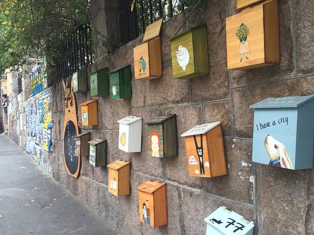 道路两侧斑驳的围墙里是一座座陈旧素朴的小二层楼,一砖一石一花一草里都秘藏着这条街这座城市里的许多扣人心弦的故事。这里的行人稀疏,因为这条路上是青岛仅存的几段石砖路若不是穿着舒服的鞋子其实走起来挺累的,这种石转璐感觉像是给脚底按摩一样,这里开了很多有韵味的咖啡馆,洋气的小餐厅,别致的青年旅社,创意十足的涂鸦壁画,总有一种在欧洲小镇的错觉。