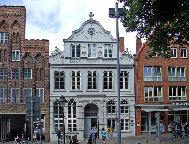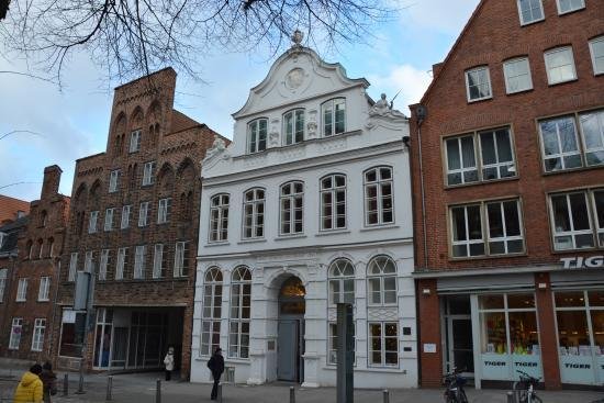 这座位于Mengstraße四号的房子曾经是托马斯·曼家族的老屋。托马斯·曼在这里出生,成长。可以说,这里是作家童年生活的印记也是他对吕贝克贵族家庭衰落描写的源泉。时代的社会风貌,人物的刻画都可以在这里找到依据。据说小说《布登布洛克家族》发表之后,很多住在这里的街坊邻居甚至可以在书中找到以自己为原型的人物。现在的曼家族老屋已经成为曼兄弟纪念馆和研究所。游客可以在一层的展厅看到其家族的介绍和背景。二楼则是托马斯·曼接受诺奖的地方。