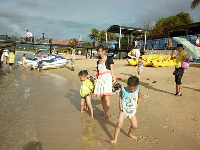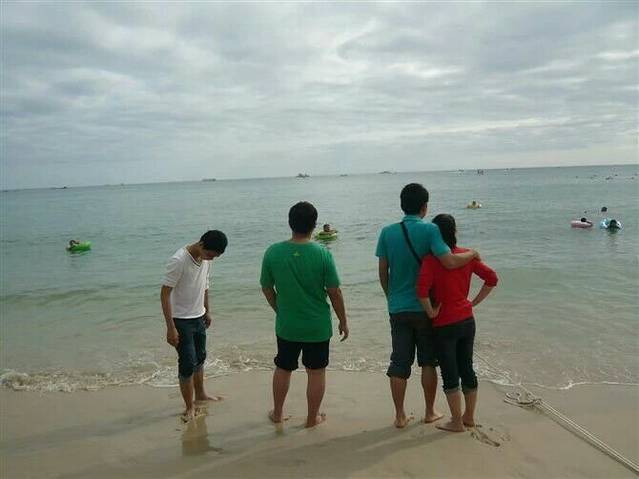 第三天我们一起来到了美丽大东海。那里的海很大。水是多么蓝就像一块晶莹通透的蓝宝石。这里的沙滩十分美丽,沙子是多么的柔软,就像一块黄色的海绵。