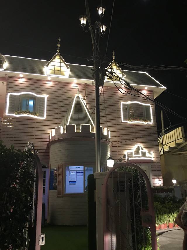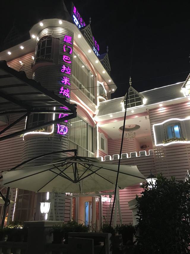 车子到路口就看到很显眼的粉色城堡,晚上开的灯光也最亮,很好找