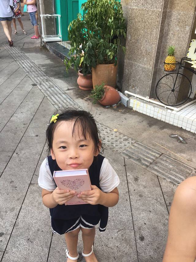 第二天早上8.30起床,洗漱好下楼9:30.原本定了10:10的船票司机师傅建议高峰期堵车有可能来不及,果断改成下午13:50的船票(之前网上订的是50元的豪华船票,改签收了10%的手续费,下午的票司机建议买35的普通船票,司机师傅还是非常友善地😬),上午就近在曾厝安吃早饭,4个人点了2碗面,1个炒饭1份南瓜饼,1碗粥合计120元味道马马虎虎给3颗星,吃完还有时间就随便逛逛小盆友的购物欲望很强,看到新鲜的东西都很好奇,逛好差不多11点,怕到时路上堵提早坐车到东渡码头,打了车过去用了40元,到了码头还有2个小时才能上船,只好在大厅等待,不过楼上的观海台有美食也可以看看风景,就是人超级多美食城里人山人海,油烟重,根本没有心思做下来品尝,还好小盆友并不计较😜,买了一个超级大的鱿鱼2人啃着吃,还是能填饱肚子的,也消磨了一下时间,提前20分钟检票上船,东渡码头到鼓浪屿还是需要20分钟的路程,好在吹着风看看海,一会儿就到了,由于有小盆友所以上岸后我们没有找导游,粑粑之前来过所以现成的借用一下🤓绕着海边慢慢的走,虽然妹妹中途会喊累,但是适时的引导还有姐姐的一路陪伴还是很棒的走完全程,还有吃到了小时候的回忆,老冰棍,边走边吃,边吃边淌水,超级解渴……有名的景点我们几乎都没去,貌似来的目的不在于此,直奔龙头路的商业街,每一件精致的纪念品和门口别致的陈列都深深的吸引着小盆友,流连忘返,填饱肚子后小盆友开始了勇敢的趣味的盖章旅程,还有我最喜欢的芒果直接让老板削皮切成块捧着边走边吃。18:30以后返回是在轮渡码头,离住的酒店近.所以打车只要18元,到酒店已经20:00,由于一天的行程都在走路大人和小孩都有些累所以果断决定在房间叫外卖,点了大众点评的小龙虾,没想到在厦门也可以吃到超级辣的龙虾,一份龙虾一份炒蛤蜊,一份炒粉丝,一共200元