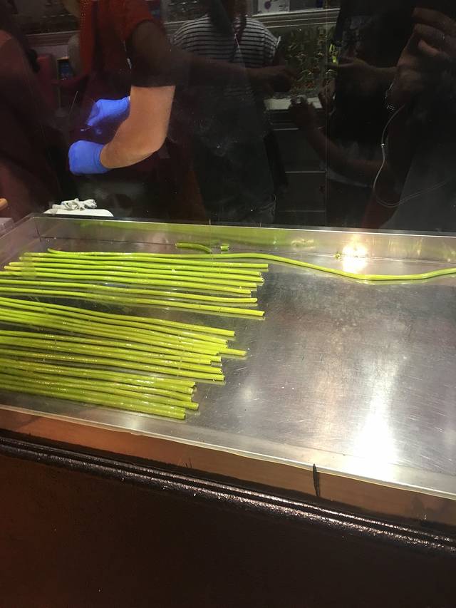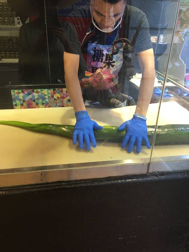 小哥在加热板上不停的搓,糖经过加热可以做不同的造型