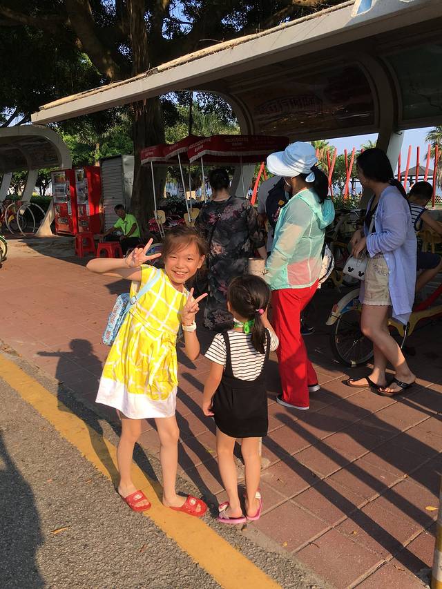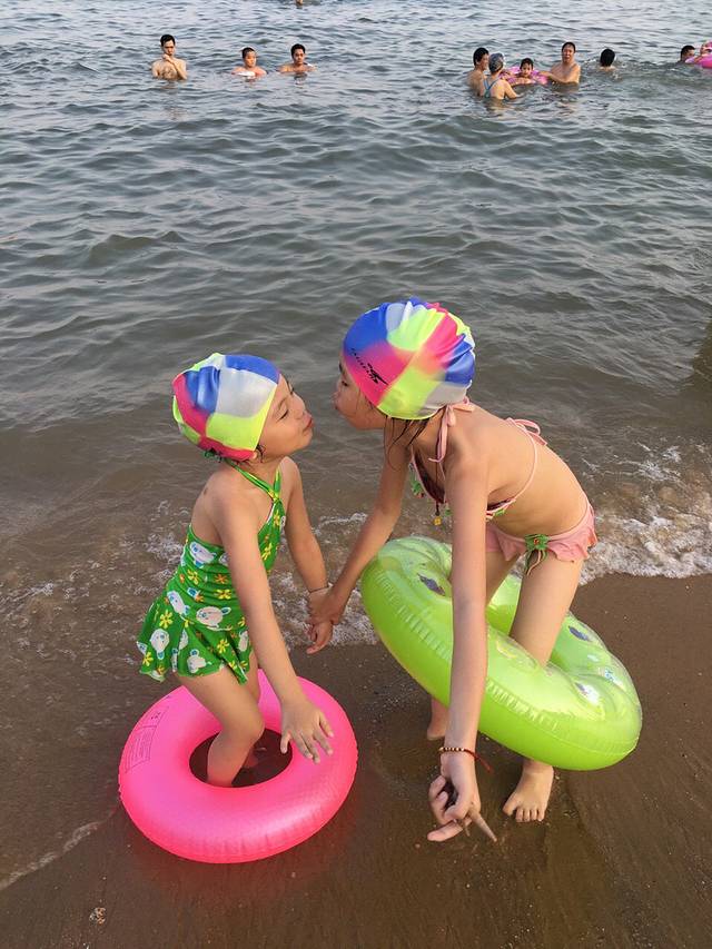 帆船体验回来全身都湿了所以先回酒店换衣服,另外稍加休息,吃了点东西补充能量,出发去黄厝浴场游泳去了,来了厦门总是要去游泳的😋也是小盆友强烈要求去的,原本打算骑自行车去但是我们有2个大人加2个小盆友,没有4人骑的车子,分开2辆车貌似麻麻有点吃不消,所以还是放弃了直接打车前往目的地,游泳的地方不用门票,自己在酒店先换好了泳衣,带上游泳圈那边有冲气的地方只要3元钱,虽然做过攻略但是还是觉得黄厝的水也不是很干净,沙滩的沙子也不是很细腻,不过重点不在这,我们的目的就是玩水其他不重要了,玩好有小商贩放的帐篷可以换衣服每人5元搞定,玩好差不多快19点了,赶紧打车去往打探好的邻家闽南菜,刚好在曾厝安附近,环境是相当的不错硬件也好,而且又在海边可以边吃边欣赏夜景,吃饭的超多,拿号等了20几桌不过有提供水果和饮料还是很贴心的,差不多等了20几分钟就轮到了,我们点了厦门特产姜母鸭,牛排,水果沙拉,蛋黄南瓜,姜葱炒蟹,鸡汤捞面还有土笋一共消费450元,餐前每桌会赠送米汤非常不错解渴也很适合小盆友喝,点完餐带着小盆友上了2楼的露台小玩了一会有茶几和凳子可以供吃饭的游客欣赏夜景,总之是非常不错的选择,吃完沿着海边慢慢散步,小盆友还玩了套圈的游戏,拿到奖励品打电话给酒店派车来接,然后满足的回酒店睡觉