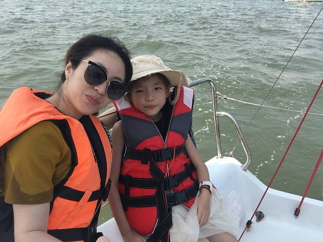 非常棒的体验👍原本第四天的安排是到日月谷泡温泉,但是考虑到小盆友玩一天的水太累,所以改了行程,上午在酒店睡到自然醒,中午在曾厝安吃午饭再无目的逛逛等待司机接送去玩帆船⛵️,车程大约20分钟,人均158包接送,大人小孩一样的价格,完全是放松的一天,刺激好玩,到达目的地只要凑齐8人很快就可以出船,时间是60-70分钟,具体要看实际的操作。出了港湾海风加大,帆船可以做到60度的倾斜,船上都是配备有经验的专业船员,所以无需考虑安全问题,上船之前都会跟我们讲解在船上的注意事项,穿上救生衣就可以出发了,虽然开始会担心在海上暴晒1个小时但是在海上其实没这么热,刚开始还带着帽子,但是出了港湾直接拿掉了,一是风大帽子容易被吹走,妹妹的帽子就留在了海里,二呢其实很凉快一点都不热,但是防嗮还是不能马虎,从头到脚一个地方都不能漏掉,另外自拍杆非常实用,坐在船上可以抓拍任何时候,(刚下车的地方会有一些商贩在卖手机防水袋和冰袖,但我们没买,后来的实践说明没什么大用,除了裤子和衣服湿了,有自拍杆手机很安全)据说我们要的区域会有白海豚出现,但是遗憾的是没看到,如果有估计小盆友们要尖叫了😇