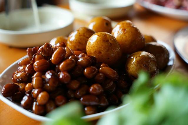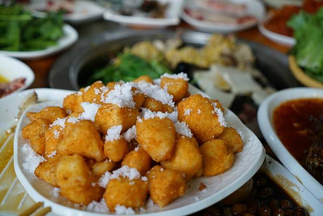 放下行李,泡会温泉,短暂休息后,晚饭时间到。开头说到齐齐哈尔的烤肉最著名,今天的晚饭我们就来到【顺玉大片肉朝鲜烤肉】,一到饭点人满为患,这里的烤肉显得更加豪气一些,大片的肉片在油花的带动下发出滋滋的声音,火力旺到一下就能变色,再加上特色蘸料竟然是如此美味。胸口肉的鲜嫩无与伦比,再用苏子叶裹满肉片,苏子叶特有的那份香气配上裹满干料的肉片别有一番风味。酱土豆、花生好吃的让我流连忘返,三瓶雪菲力下肚,再来一份热情的服务员大姐送的吉利糕,现压冷面劲道爽快,还有香甜的自酿米酒,享受这份霸气美味。水足肉饱结束齐齐哈尔完美第一天。