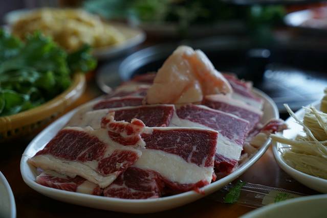 一天的游玩和享受,让此刻的我已经饥肠辘辘。而且来齐齐哈尔,一顿烤肉必须不能满足我那颗吃货的心,【完美生活】舌尖上的中国让大家家喻户晓,把豪气的烤肉打造成清新文艺风,也不失大口吃肉的爽快。特品牛排肉太赞,全瘦的肉考完后不柴反而出奇的鲜嫩,吃齐齐哈尔的烤肉已经爱上苏子叶那特殊的香气。把肉卷在叶子中,抹一点点辣酱,肉香叶香完美融合,这才是完美生活!我简直成了酸菜代言人,因为北京吃铜锅我必吃酸菜。来齐齐哈尔吃烤肉必备烤酸菜,被吸干水份的酸菜透着焦酸的口感,裹满干料放入嘴里,只有吃过的人才会懂得那份满足~