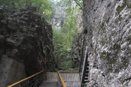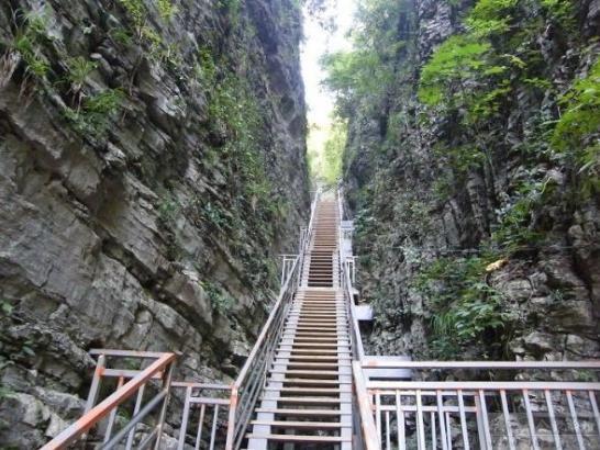 大峡谷绝壁险峻,从窄窄的缝隙间透露出光线,像是一扇大门为我们迎接我们,沿级而下,七百多步的阶梯垂直而下显得十分陡峭,真怕两山合拢,有一种心惊胆战的感觉。