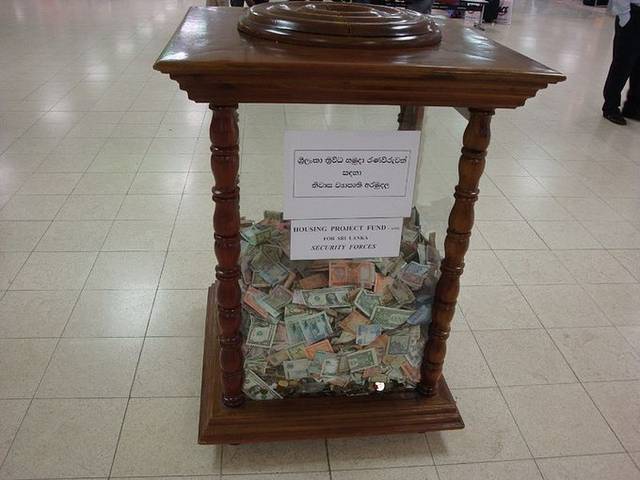 科伦坡的机场不是很大,呈现长条形,机场能够购买的东西也不多;哪个捐款箱好像是什么公益基金,里面有各国的钞票。
