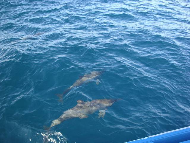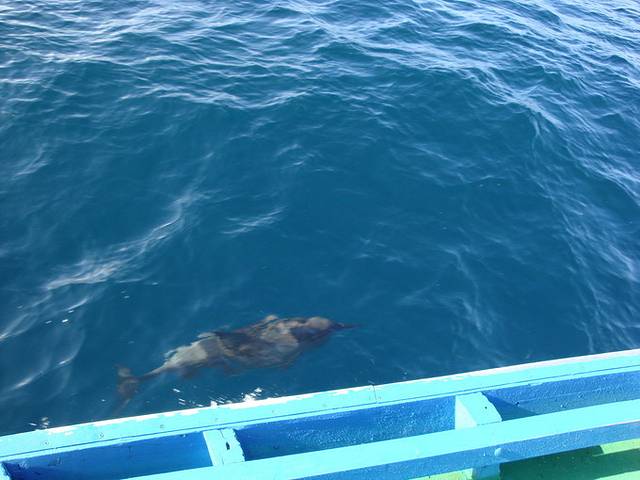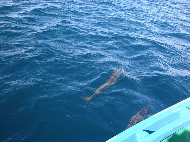 我们还非常幸运地看到了海豚家族,两个大海豚带领baby Dolphin出来散步。从事后录像我才了解到当时我们和其他人是多么地兴奋,很久没有这种忘乎所以发自内心地快乐和欢呼了!