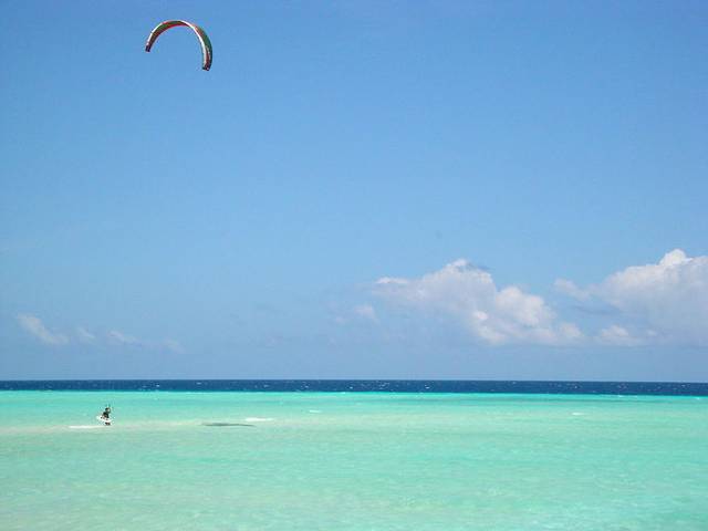 无边界泳池那里的位置很抢手,加上位置不多,所以如果你想享受地躺在那里晒晒太阳看看小说,记得早点去占位置,无边界泳池和码头栈道这边的沙滩就是水上运动区域,经常看到有人玩帆船,还有那种利用滑翔伞冲浪的运动。很多欧洲人还带着专业的水上运动装备过来。