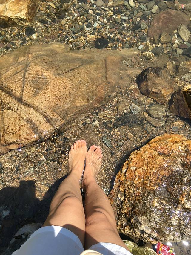 朋友们都是边走边游,走到能游的地方就在水里玩一会,可惜我没带用泳衣去,只能泡脚洗手。下次有机会再去的话一定要游泳。
