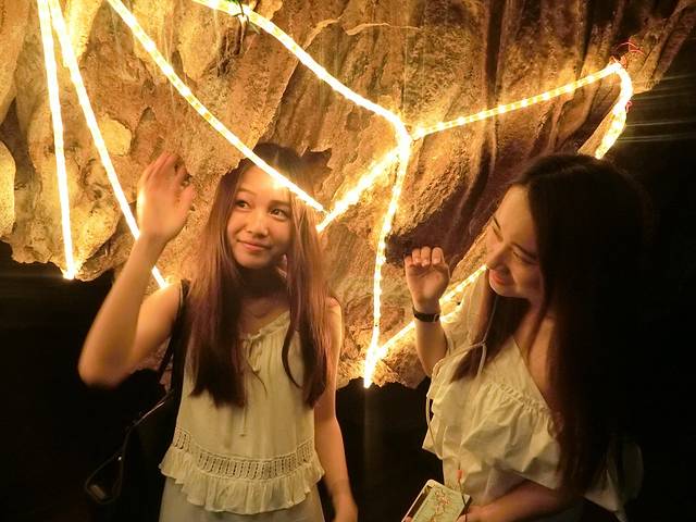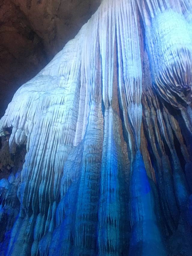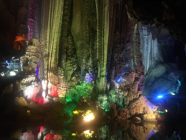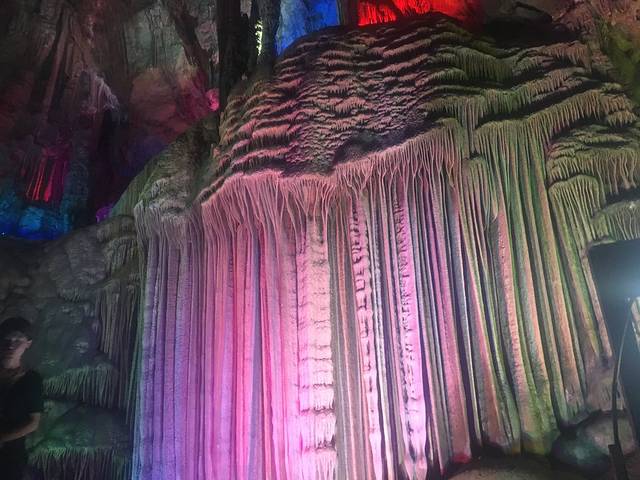 因为天气热辣 我们一天只安排去一个景点 给足自己睡懒觉的时间 早上十点多起床换了家客栈后 到西街吃了当地招牌菜啤酒鱼 还有我的最爱地瓜叶 又回去午睡(变态芳不午睡会很变态,所以有她的地方必须有午睡)下午到阳朔车站坐专门的大巴到银子岩 银子岩典型的喀斯特地貌,洞内色彩缤纷心态各异的钟乳石堪称鬼斧神工,通过各种灯光的装点,真的是无与伦比。进洞前景区会给每个人发一个电子讲解器,随着讲解器引导,你会发现许多钟乳石就如所说般惟妙惟肖。