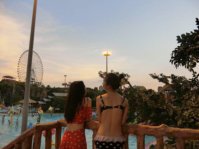 凤岭水上乐园在南宁的新城区 从广西大学出发的我们 作死地选择了电动车出行 将近一小时的车程 简直考验司机的车技和大家的屁股……建议四个人一起去玩 因为很多水上项目需要四个人一起才能玩 比如说大喇叭什么的……
