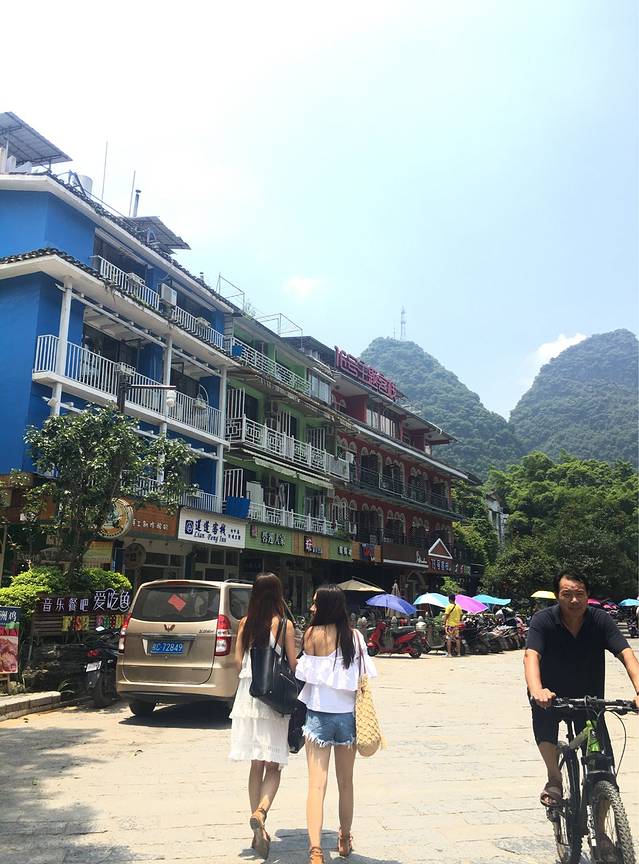 从南宁到阳朔 我们大概花了一天时间 从广西大学打车到动车站大概一个小时 不幸晚点改签了 于是我们在动车站吃了大半天 从南宁到桂林 动车两个半小时 出了动车站 门口就有到阳朔的大巴车 桂林虽说是个著名的旅游城市 但道路并不平坦 一路上尽情摇摆 大概两个小时 终于到了阳朔车站 再打车到客栈 已经是晚上十二点了