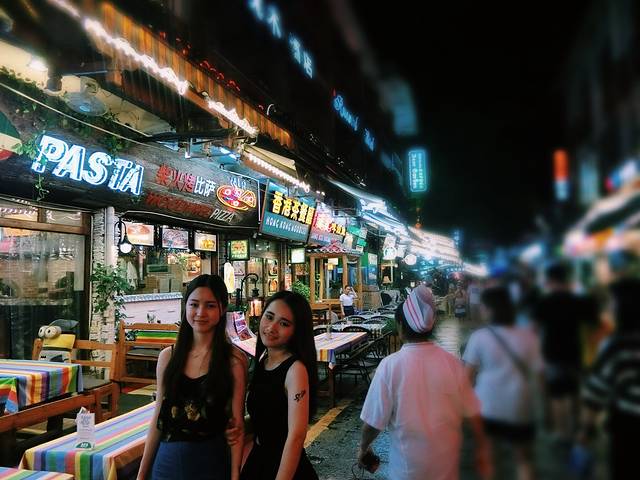 西街真的是来了广西必到之地,西街的附近,是许多大大小小的客栈,各有特色,价格不贵,当然条件也不算好,但是各种不同风格的设计,值得体验。西街是一条比较商业化的老街,有酒吧,有各种精品店,餐厅也是多样式,中餐、西餐、海鲜、大热狗、披萨……。到了晚上,挤满了人群,有卖冰棍的小姑娘,穿着全国景区同款的民族风长裙两手挂满裙子宣传的大妈,还有街头卖艺的青年。我想在这样著名的景点一定没有淡旺季之分,一年四季,日复一日都是这么热闹。