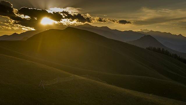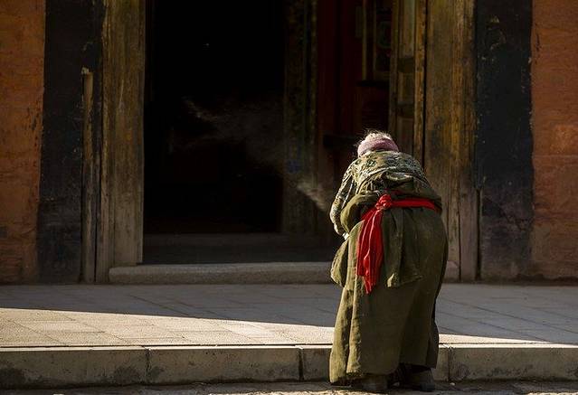 早上五点,天还是漆黑,一个人爬起来,问着路,爬到了拉扑楞寺后面晒佛台的山上,等待日出。山虽然不高,但背着沉重的相机包,猛爬一段后开始觉得心跳加速头晕眼花,连忙站住调整呼吸,等平稳了一步一步慢慢上。