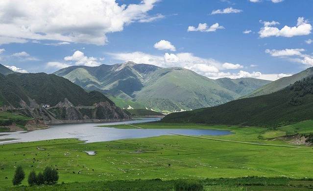 路上蓝天白云青山绿草实在让人心旷神怡。