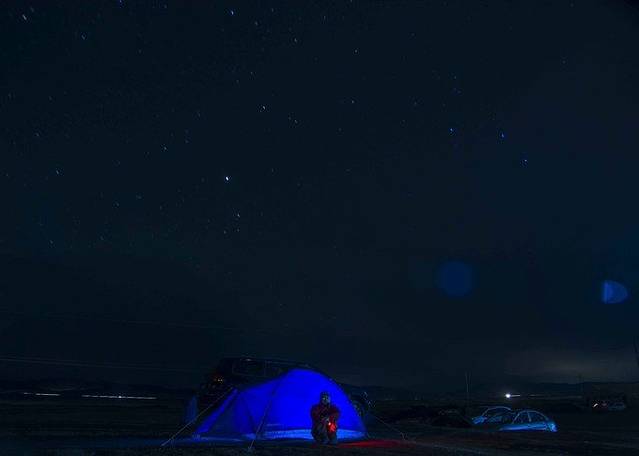 夜里三点多下来一阵大雨,到四点雨停了。害怕继续下大雨,于是起来收拾了帐篷进车里休息。这时天空漫天星斗,但气温低的实在不想伸手。在车里想等五点暖和点出去拍。真的到了五点,天空又是厚厚的云层了。