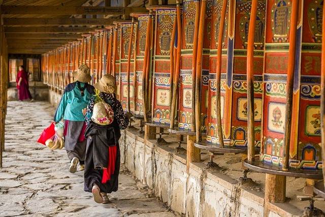 下山后时间还早,回酒店怕打搅他人休息。于是收起相机,跟着藏民,认认真真围着拉扑楞寺走了一圈,把1700多个转经筒全部转了一遍,感受世界上最长的转经长廊。