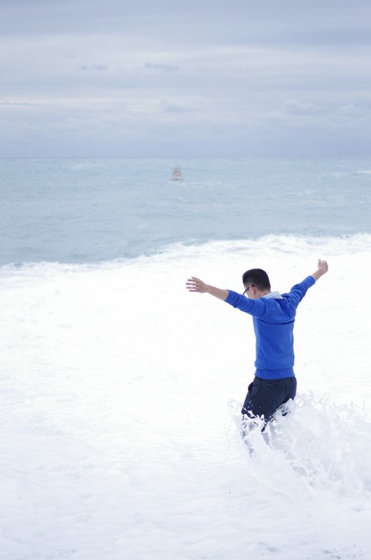 没怎么见过海的乡下人,在海边玩起来像个孩子。