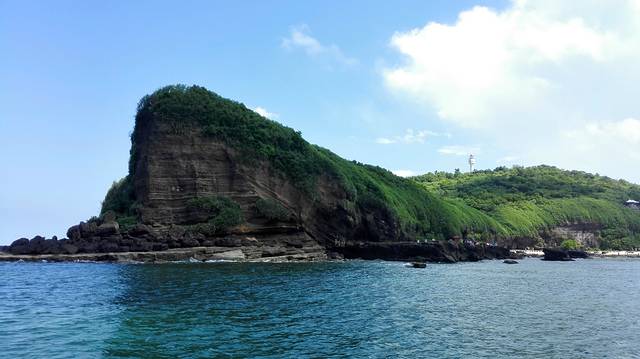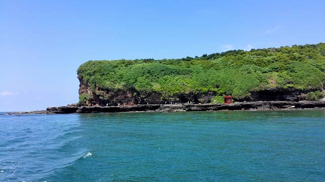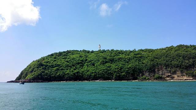 鳄鱼山公园又称“火山地质公园”,在涠洲岛的西南边,在“鳄鱼”山脚下,因壮观的火山熔岩而出名,是涠洲岛上最主要的景区。其实是海岸边的岩石山形似鳄鱼。公园走完比较辛苦,上下800个台阶,全程一个半小时,还要每人另购20元的观光车;另外的一种体验方式,是每人60元坐船观光,可以远距离外观,体验珊瑚礁。开启一小时的海岸航行,不管是布满球墩的网袋海鲜养殖,还是浅岸的珊瑚礁海底观赏,以及偶遇悠闲的海钓游客,我们眼界大开,船游的重点最后放在了鳄鱼山公园,船夫兼导游耐心细致地介绍,远处高耸的白色灯塔像渔女地守望,眼前是火山爆发后形成的熔岩和褐色石块,月亮湾背后的海盗藏宝洞,让我们浮想联翩……