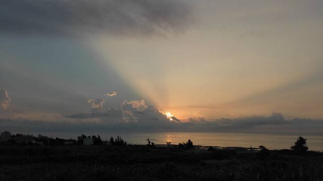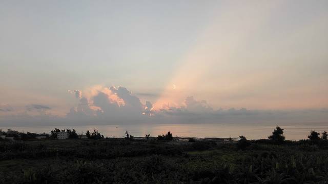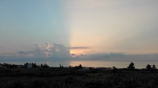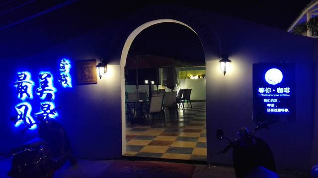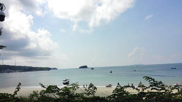 在4楼的阳台远眺斜阳岛,晚上满天繁星....惊喜的,第一次看到了,一轮红红的月亮从海上升起.....