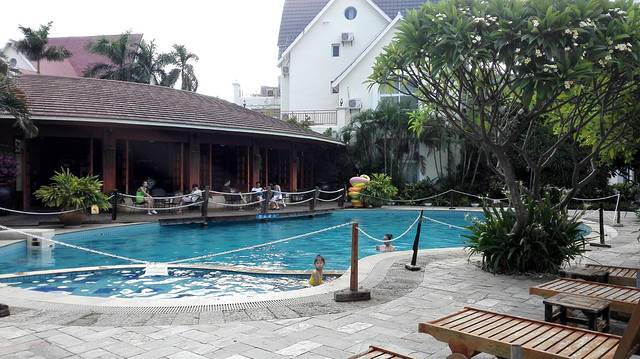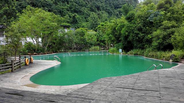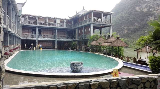 酒店就是景区。下午老爷子带孙子在酒店泳池游泳,我带着娘娘双人自行车周边环游。
