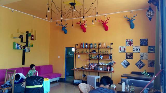 客栈离五彩滩很近,几个年轻人开的,懒懒洋洋,舒舒服服,几个人在那喝茶聊天,入住时间外就在房间休息,夜不闭户。