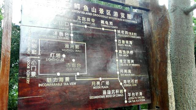 在涠洲岛鳄鱼山公园内,视野宽广,海景极其优美,适合摄影,远望弧度美妙,近观开阔抒怀,是个很特别的海边广场,指示和图标很清楚,环境优美,值得一看!