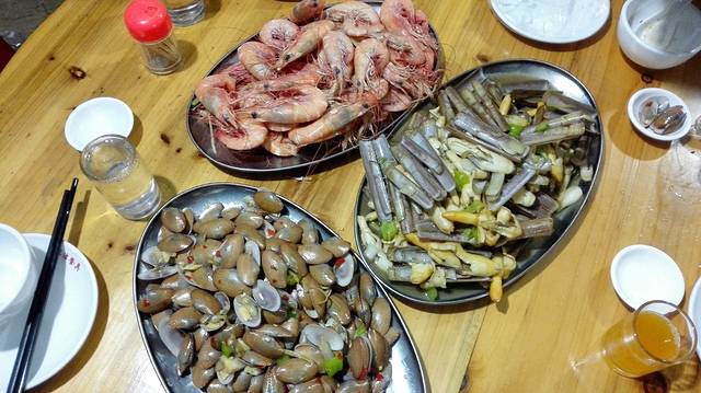 北海第一晚,晚上就在这吃的,外面拍档怕挨宰,点了明虾、花螺、蛏子还有别的,烧的味道不错哟,215元。值!